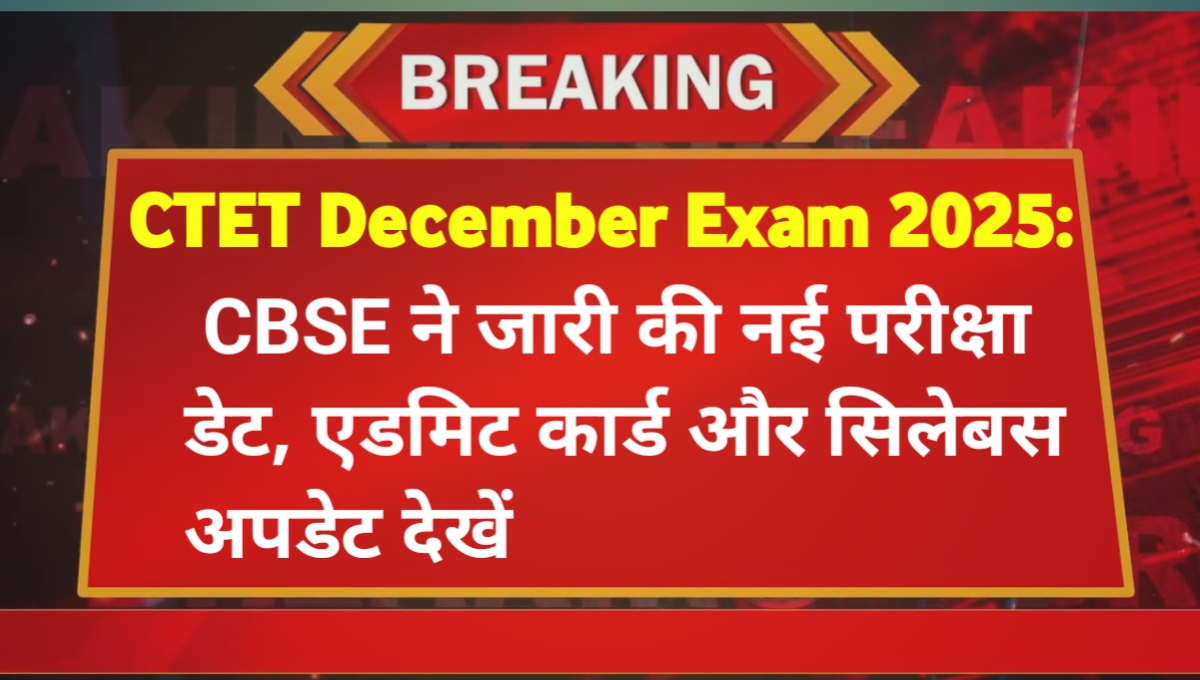 CBSE ने अपने Official Website ctet.nic.in पर Notification जारी करते हुए बताया कि CTET December 2025 Exam देशभर के 200 से अधिक शहरों में आयोजित की जाएगी। जिन उम्मीदवारों ने आवेदन किया है, वे अब नई डेट्स, सिलेबस और एडमिट कार्ड रिलीज डेट जरूर चेक करें।